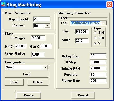 6. Select menu Toolpaths - Rotary and enter the following....